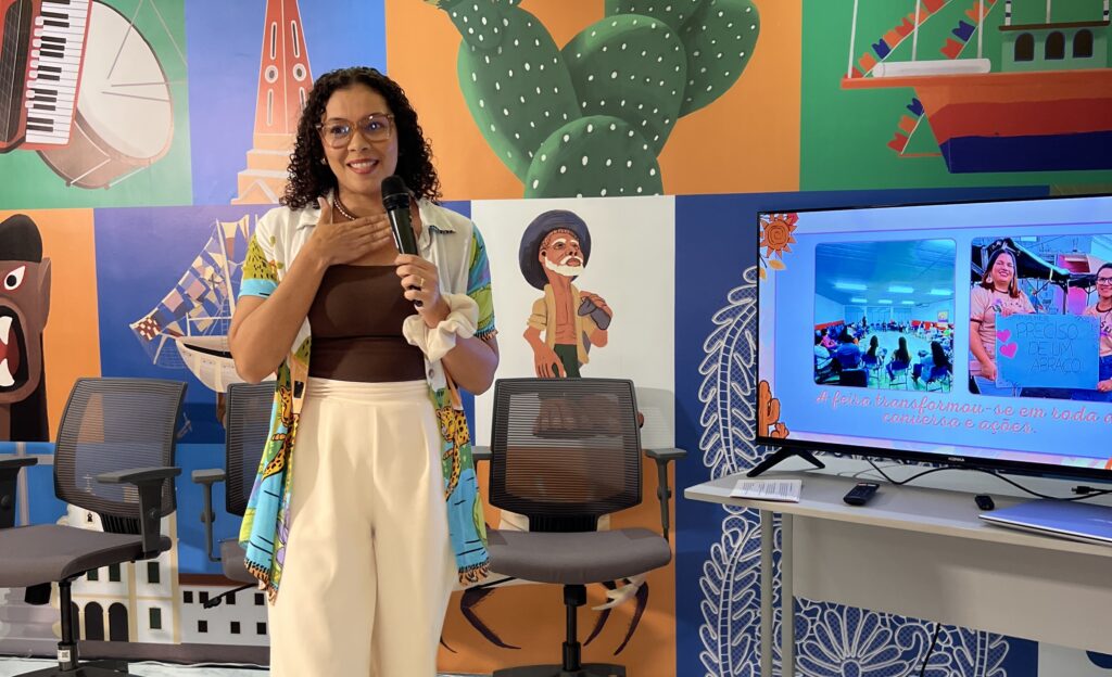 Um dos pontos altos do Estalo Criativo foi o momento de pitch, no qual três projetos locais foram apresentados ao público: Petruskinha Arteira, representado por Kris Lucena; o Circuito Arrudeio, com Vinicius Benevides; e a feira Elas Empreendem, conduzida por Jéssica Barbosa. A proposta do pitch é incentivar a prática e a cultura de apresentação de projetos entre os agentes criativos, funcionando como uma vitrine para ideias inovadoras e iniciativas transformadoras. Além de visibilidade, o espaço proporciona oportunidades de conexão, aprendizado e colaboração, fortalecendo a comunidade criativa sergipana e estimulando o empreendedorismo cultural.