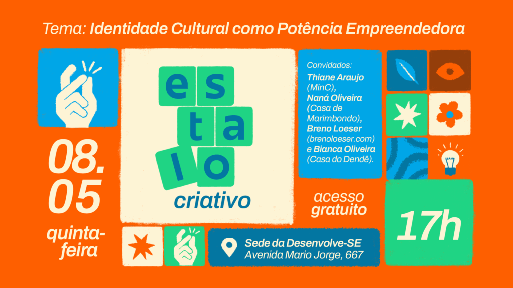 Nesta quinta-feira, 8, o Núcleo de Economia Criativa da Agência Desenvolve-SE lançará o evento Estalo Criativo. Com o tema ‘Identidade Cultural como Potência Empreendedora’, a primeira edição contará com a presença de empreendedores de sucesso do cenário cultural sergipano, Breno Loeser, Naná Oliveira, Bianca Oliveira e Thiane Araujo. A iniciativa é destinada à promoção do empreendedorismo criativo e ao fortalecimento do setor cultural em Sergipe.