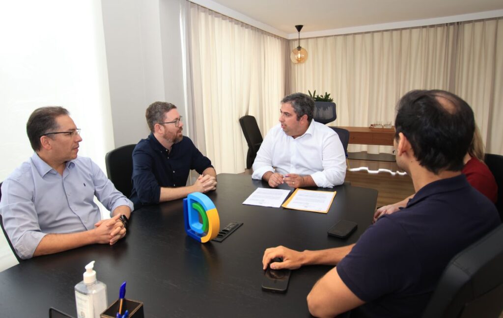 O governador Fábio Mitidieri se reuniu nesta terça-feira, 30, no Palácio dos Despachos, com empresários interessados em investir no município de Canindé de São Francisco, no alto sertão sergipano. A reunião contou com a presença do prefeito da cidade, José Machado, representantes da empresa Cavalcante & Rolim Empreendimentos, além de secretários estaduais e assessores. Na oportunidade, foi assinado o protocolo de intenções para investimento, que prevê, entre outras coisas, a construção de um hotel na região.